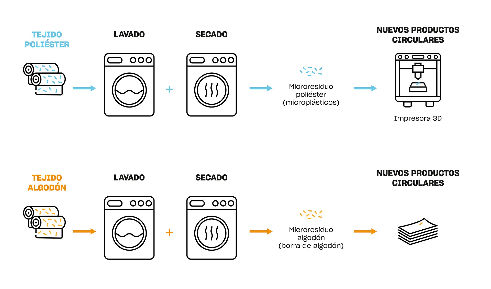 Scarbat es un proyecto de economía circular con el objetivo de dar una segunda vida a los microresiduos textiles que se desprenden durante el lavado y el secado.