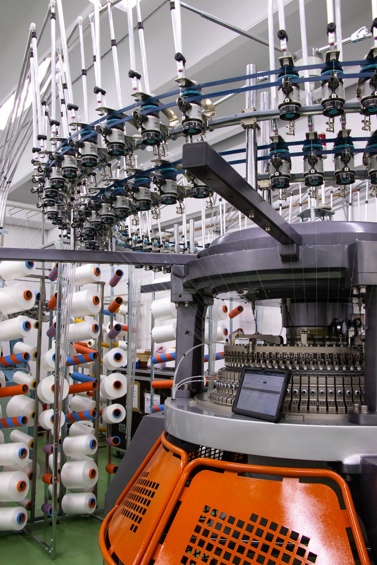 La màquina de teixits de punt circular és una altra incorporació clau en aquest projecte, ja que està equipada amb sensors SMAC 100 i integració ERP. Aquests permeten un control total del procés productiu i una millora de la productivitat gràcies a la seva capacitat per treballar a alta velocitat i amb gran precisió. Alhora, asseguren una qualitat constant i alta en els teixits produïts, complint amb els estàndards més exigents del mercat