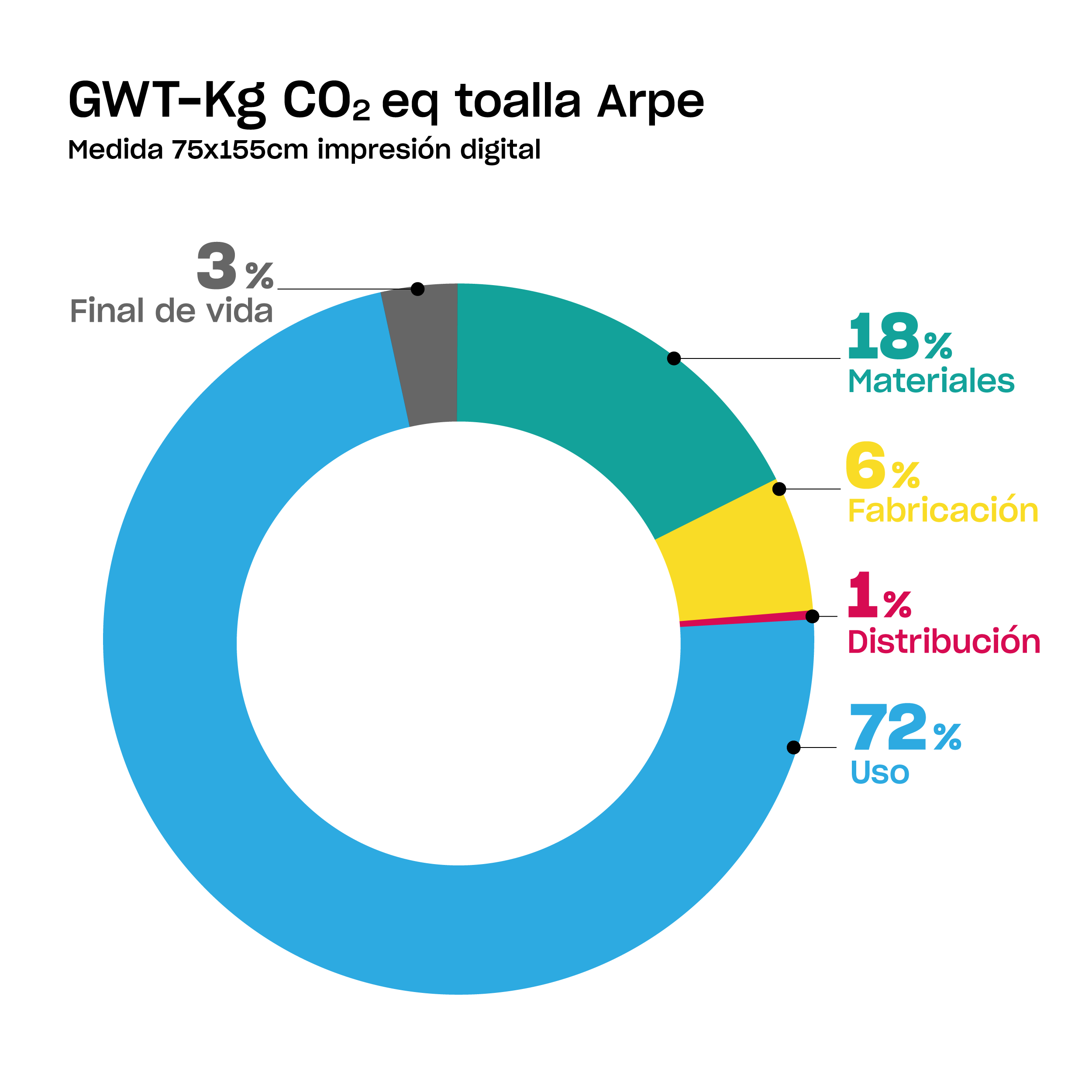 A Arpe cuidem les nostres accions, processos i impactes cap al planeta i les persones. Per això, hem calculat la petjada de carboni de tota la nostra empresa i alguns dels nostres productes, com les tovalloles de microfibra. Perquè per veure i saber si un producte és sostenible, n'has de mirar tota la vida i no només el material.