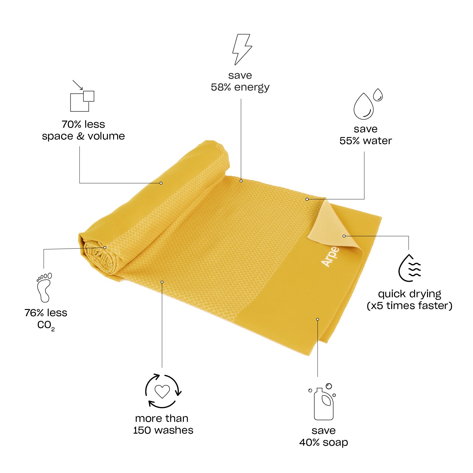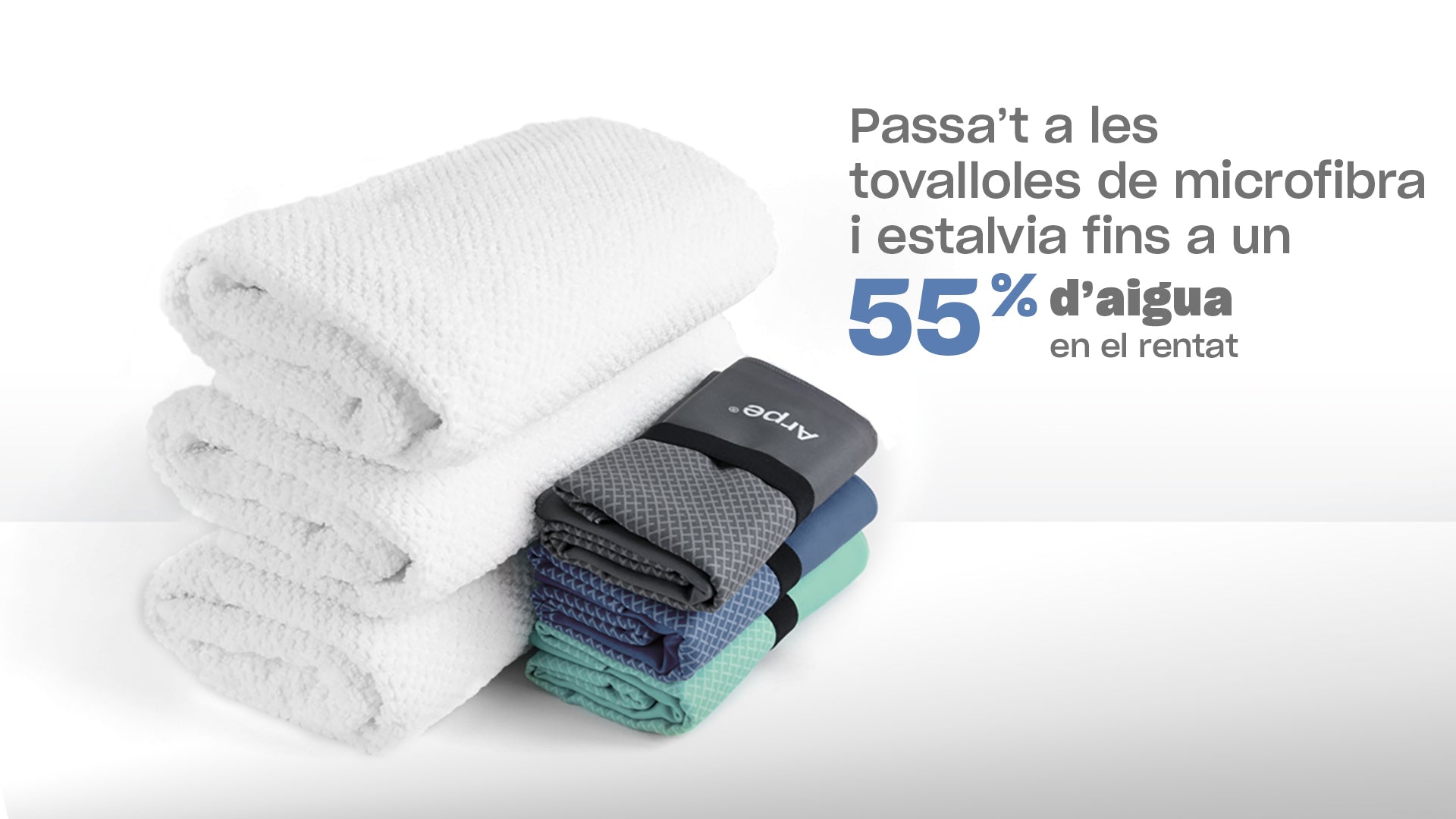 La crisi climàtica i la sequera són una realitat arreu del món, sobretot en regions de pluges irregulars com Catalunya. De fet, aquí ja estem en fase d’emergència, on la Generalitat ha implementat un Pla Especial de Sequera (PES) que afecta sectors com l’hostaleria, el turisme, els gimnasos i les piscines, que utilitzen molta quantitat d’aigua en la neteja i el rentat. Per això, des d’Arpe proposem el canvi a tovalloles de microfibra sostenibles, que ocupen un 70% menys d’espai i estalvien un 55% d’aigua en el rentat.