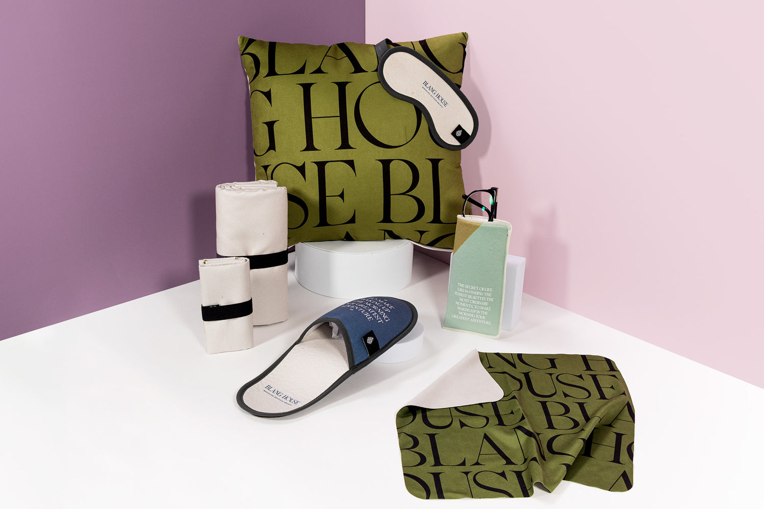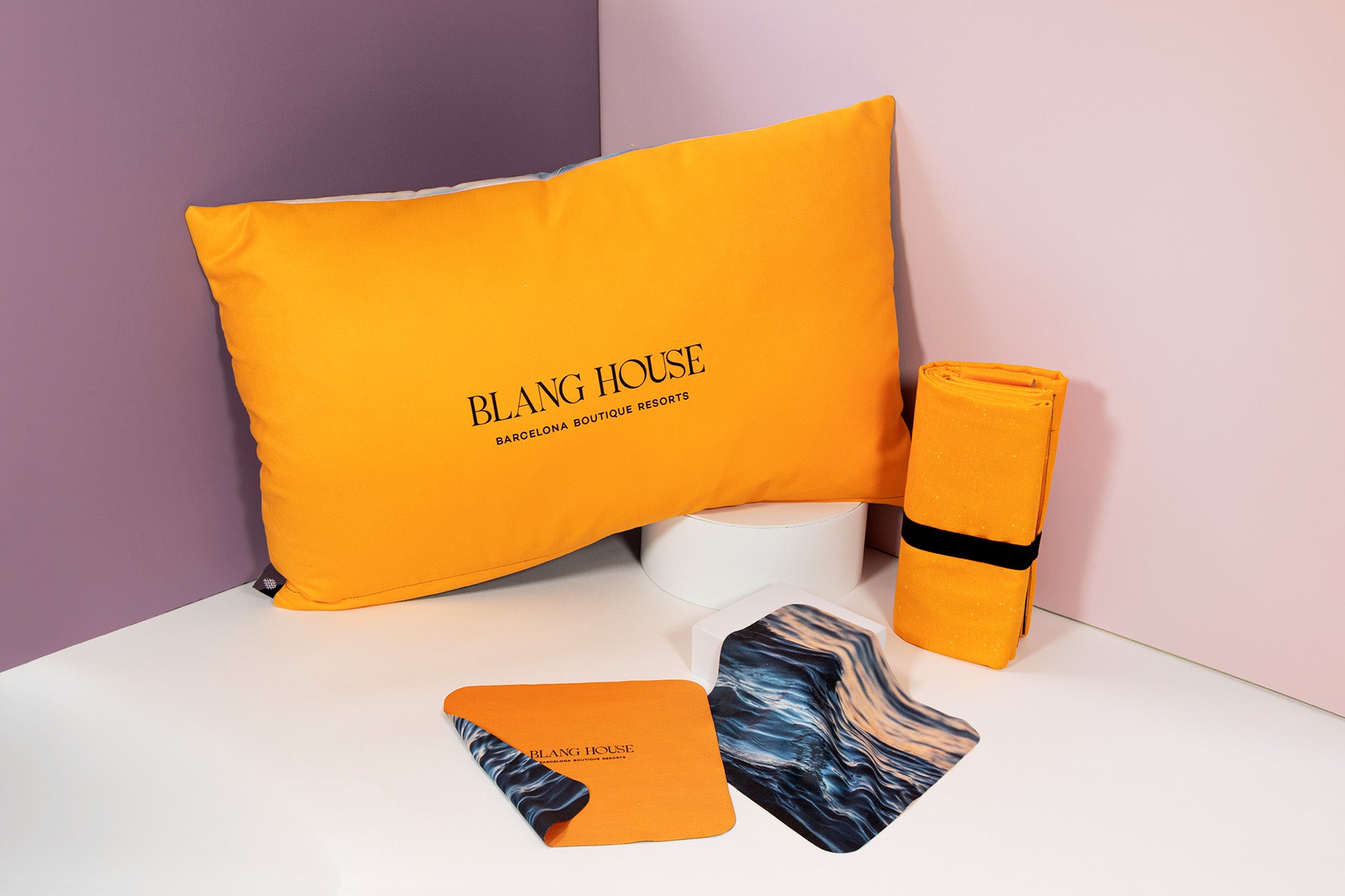 Personalitzem productes tèxtils únics i exclusius per a hotels i resorts. Antifaços i sabatilles com a kit de benvinguda per als hostes; tovalloles de microfibra per a spa o piscina que t'estalvien espai; coixins decoratius amb dissenys únics i cridaners; i necessers pràctics per a guardar totes les coses.