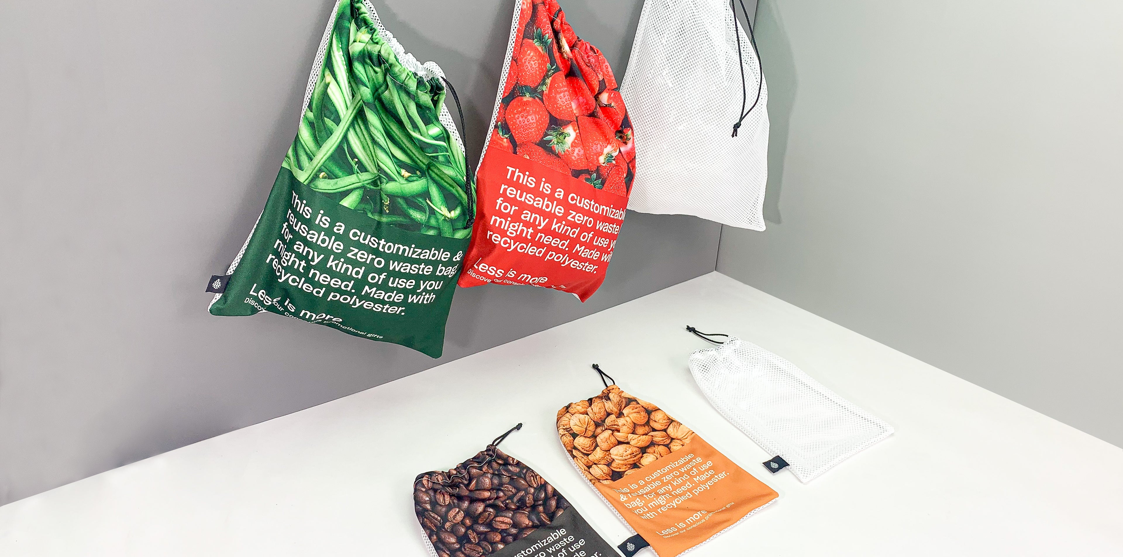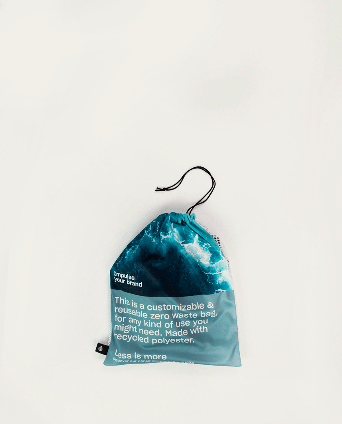 Our Zero Waste Bags come with a printable fabric where you can write and illustrate whatever you want. Recipes, instructions, slogans, logos, new campaigns... these bags become an extra marketing resource for your brand, adding a lot of value and personality, never forgetting about that 360 sustainability we talked about. Because we manufacture with recycled fabric, and we also print with OEKO-TEX certified inks. If we do it, we do it well.