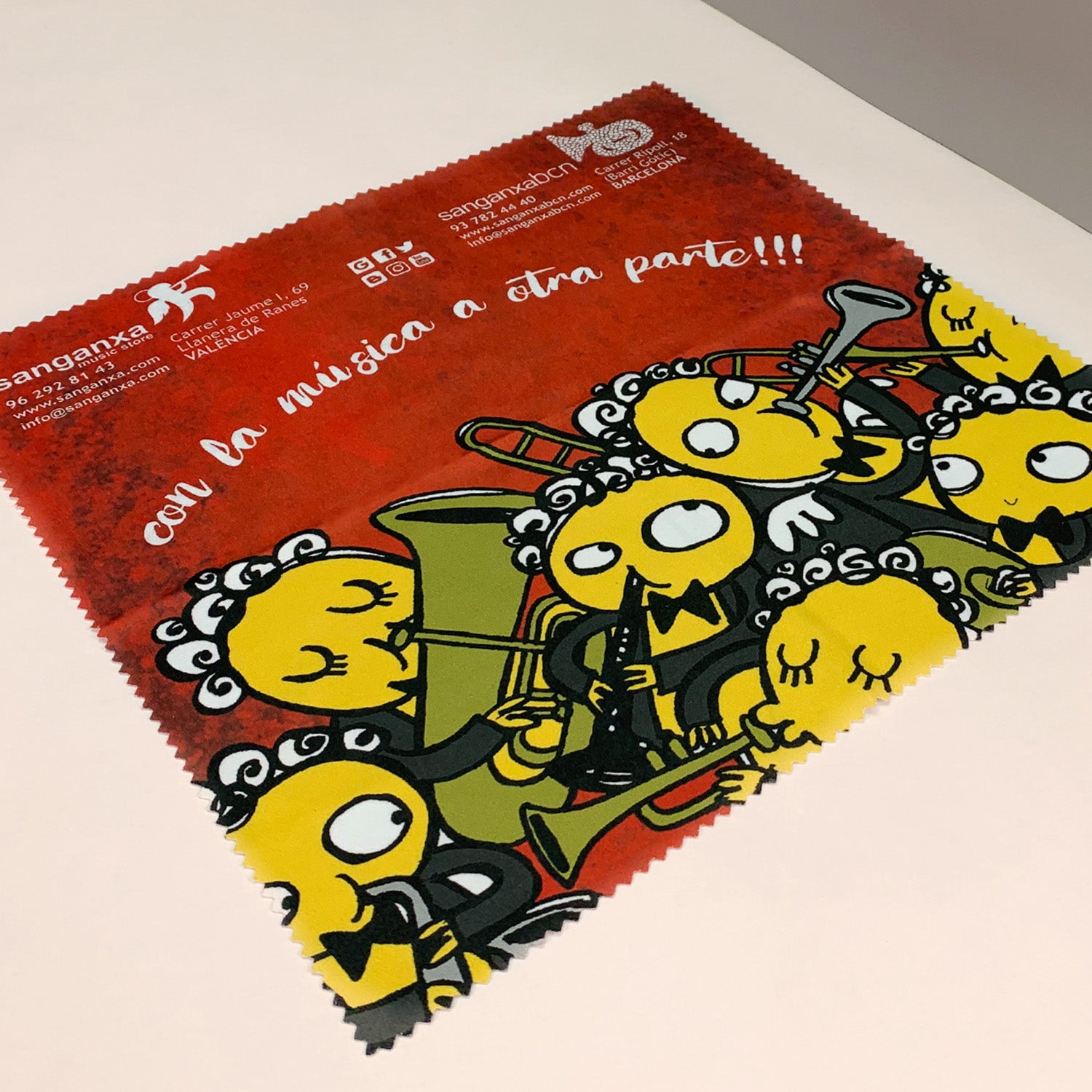 Digitally printed cleaning cloths for the instruments' store Sanganxa