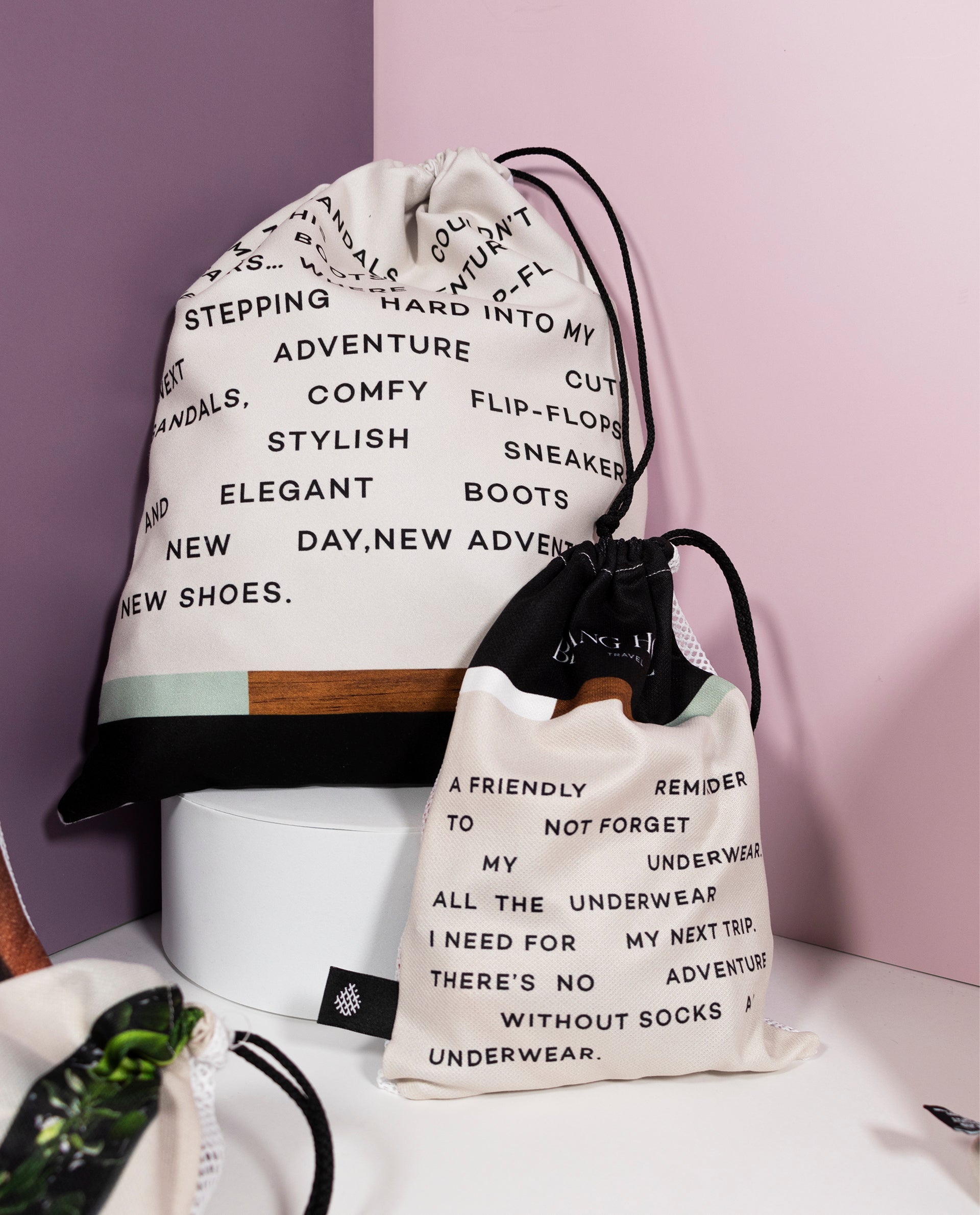 Nous personnalisons des produits textiles uniques pour le secteur du voyage, comme notre sac de voyage pratique, confortable et accrocheur qui peut être réutilisé et emporté partout. Masques de voyage ergonomiques, chaussons et coussins pour compagnies aériennes, voyages de motivation et hébergements touristiques.