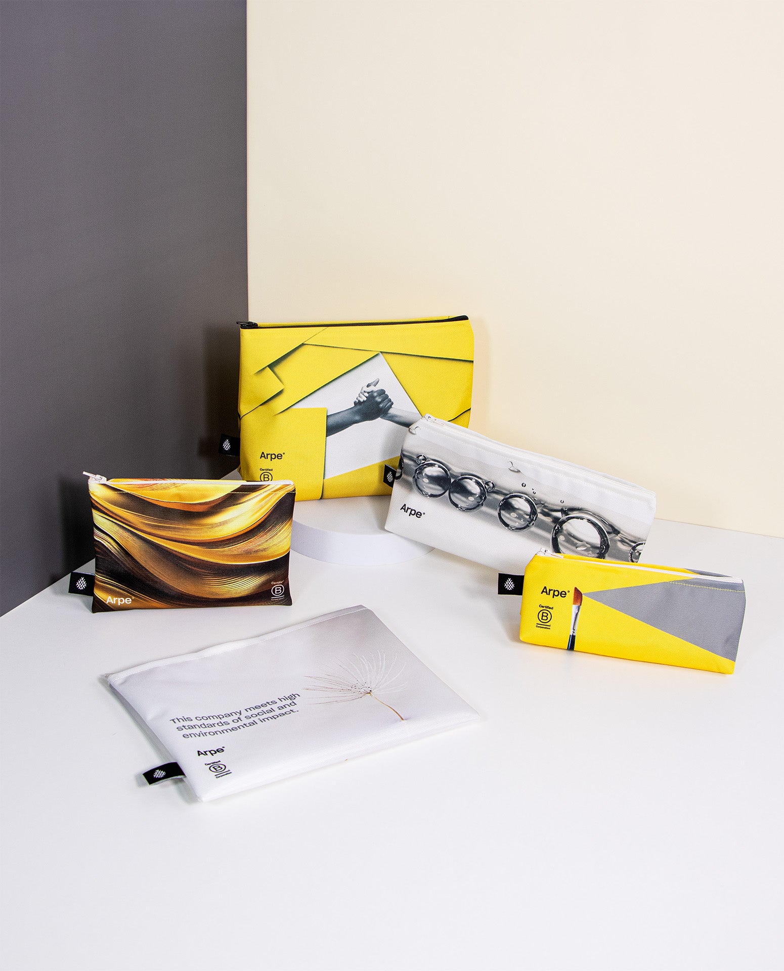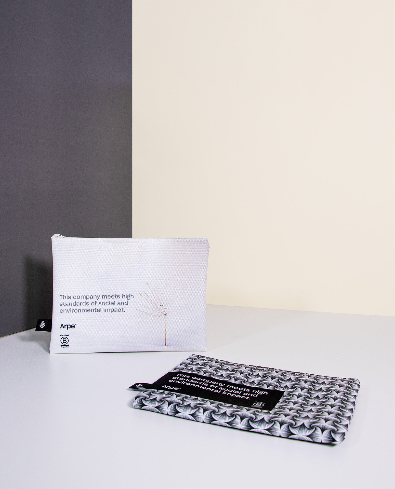 Personalización de un neceser sostenible, elegante y práctico para entregar como complemento del welcome pack.