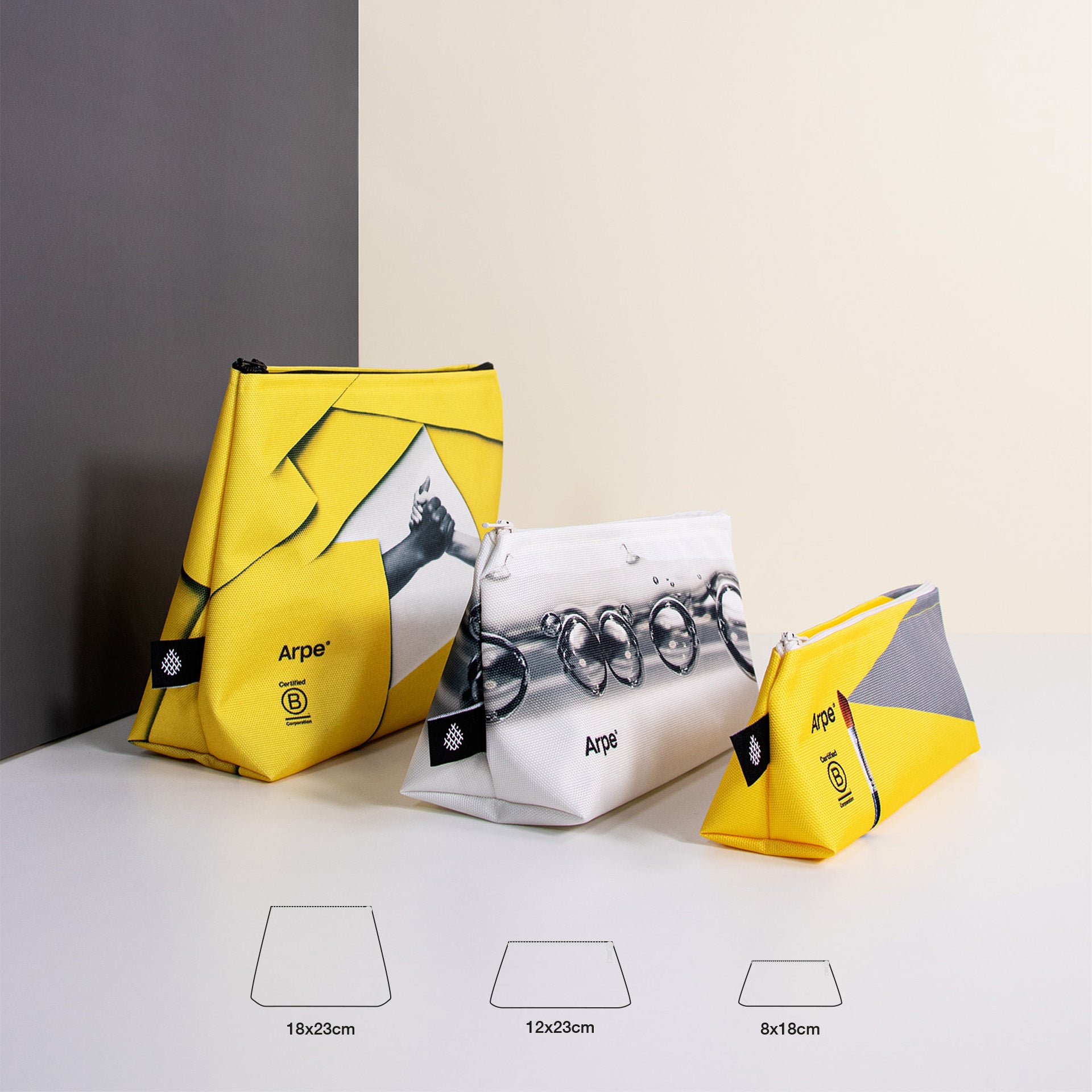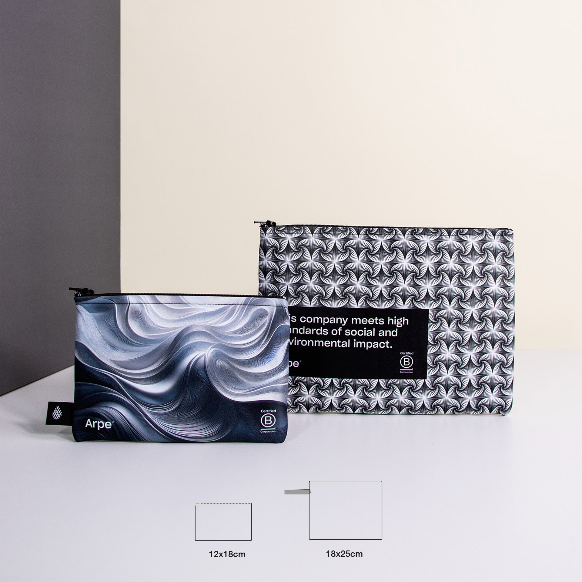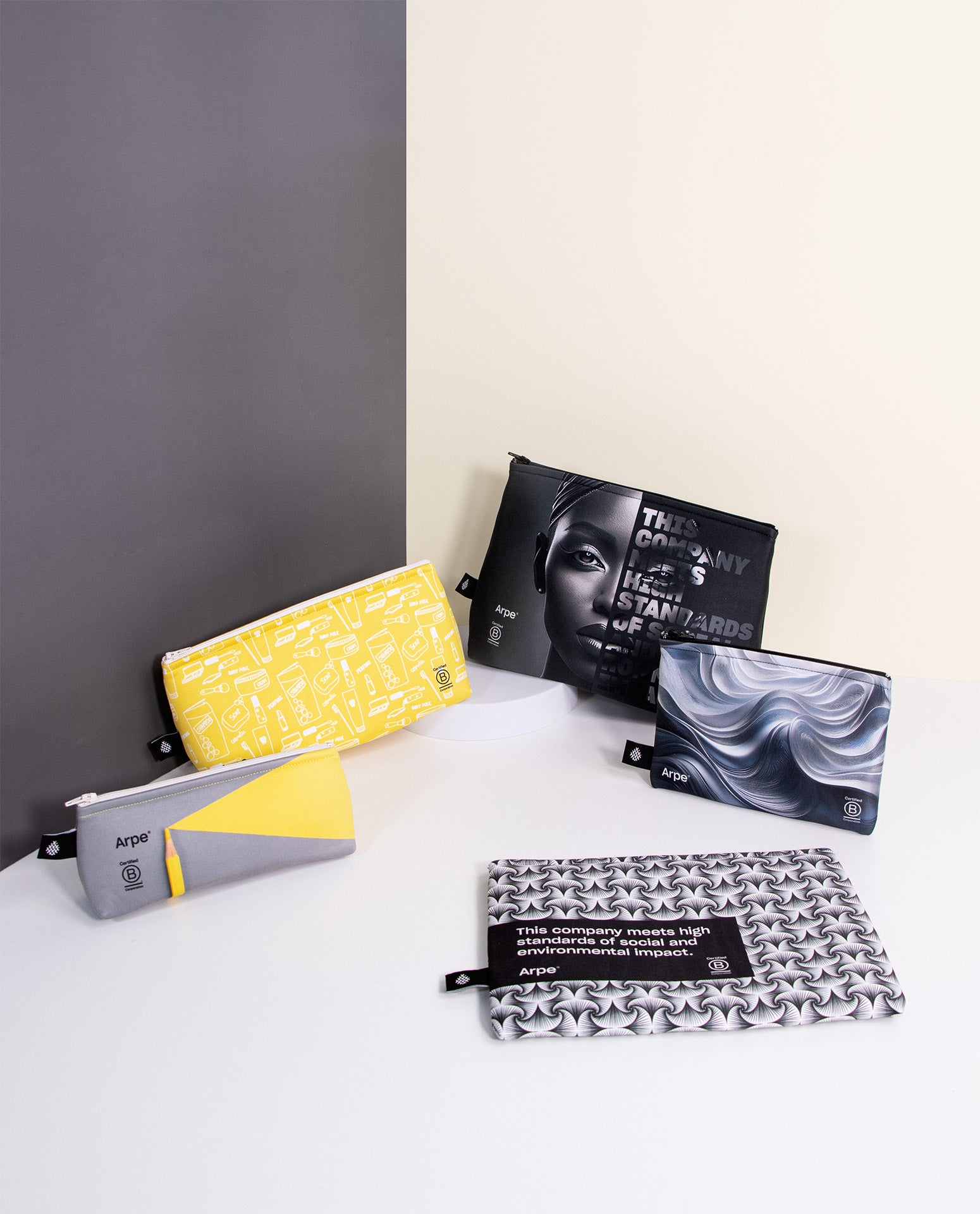 Nuestros neceseres y estuches con cremallera son un producto muy versátil, útil y funcional, diseñados para todo. Además, están disponibles en 5 medidas y 3 tejidos diferentes: resistente al agua, slif acolchado o suede rPET post-consumo.