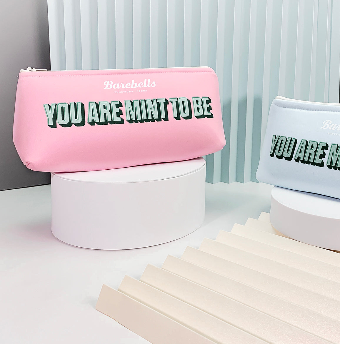 Neceseres acolchados 12x23cm impresos digitalmente al interior y al exterior como merchandising para la marca de barritas energéticas Barebells.