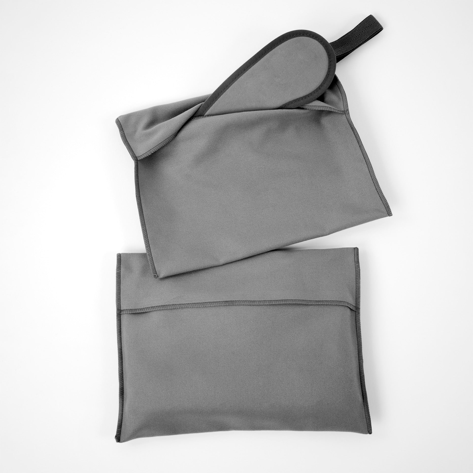 VER CASO DE ÉXITOCojín cervical, antifaz y gamuza empaquetados en una funda textil sostenible rPET.